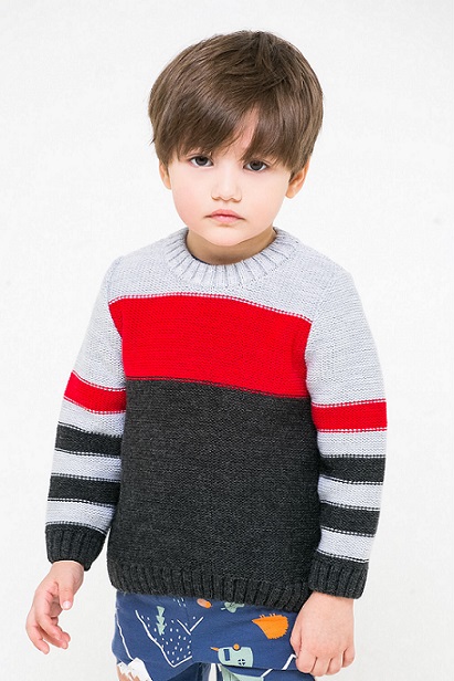 Вязаный джемпер из полушерстяной пряжи. Изнаночная вязка. Длинные рукава в полоску. Эластичные манжеты, пояс и горловина.Дополнительно