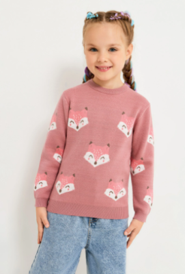 Нежный джемпер с забавным вязаным рисунком в виде лисичек выполнен из мягкой и комфортной пряжи с вискозой в составе. Плотный и износоустойчивый материал, подходящий для повседневной носки. Прямой крой. Округлая горловина. Длинные рукава. Рельефная обвязка манжетов и нижнего края изделия. Для создания яркого образа в комплект можно подобрать леггинсы.Дополнительно