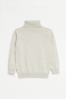 Мягкий базовый джемпер для девочек выполнен из гипоаллергенной и износоустойчивой пряжи с высоким содержанием хлопка. Высокий воротник-стойка. Длинные рукава. Манжеты и нижний край изделия имеют рельефную обвязку. Представлен в трех цветах: светло-сером, бежевом и сером в цветную полоску.Дополнительно
