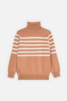 Мягкий базовый джемпер для девочек выполнен из гипоаллергенной и износоустойчивой пряжи с высоким содержанием хлопка. Высокий воротник-стойка. Длинные рукава. Манжеты и нижний край изделия имеют рельефную обвязку. Представлен в трех цветах: светло-сером, бежевом и сером в цветную полоску.Дополнительно