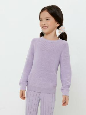 Фиолетовый джемпер для девочки. Мягкий и воздушный за счет вискозы в составе. Классическая вязка, резинки на манжетах, вороте и по низу изделия. Длина ниже бедра и спущенная линия плеча подчеркивает свободный силуэт.Джемпер практически не мнется и быстро сохнет, благодаря полиэстеру в составе.