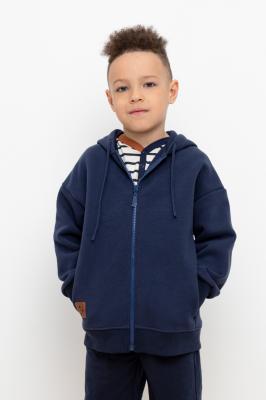 Трикотажный жакет для мальчика из футера с начесом. В составе 80% натурального хлопка и 20% полиэстера, при этом полиэстер ввязан внутрь по особой технологии и не соприкасается с кожей. В смещенных боковых швах удобные карманы. Манжеты выполнены из эластичного трикотажа.Дополнительно