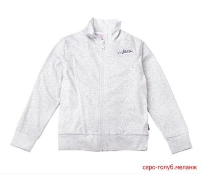 Жакет для девочки из однотонного или меланжевого супрема, длинные втачные рукава с манжетами, застёжка на замке-молния, воротник высокая стойка, на полочке кокетка и рельефы с узким втачным кантом отделочного цвета, внутреннние карманы в боковых швах. По низу притачной пояс, печать на спинке и на кокетке полочки.Дополнительно