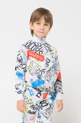 Жакет для мальчика из меланжевого футера-петли с набивным рисунком. Длинные рукава. Эластичные манжеты и воротник-стойка. Тракторная застежка-молния. Карман-кенгуру.Дополнительно