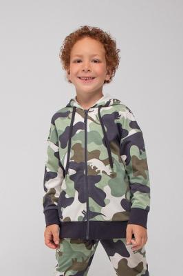 Куртка с тонким капюшоном из петельчатого футера с набивным рисунком. Застёгивается на молнию. Длинные рукава со спущенными плечами придают свободный объём. Мягкие пояс и манжеты выполнены из эластичного материала с добавлением лайкры. По бокам удобные карманы.Дополнительно