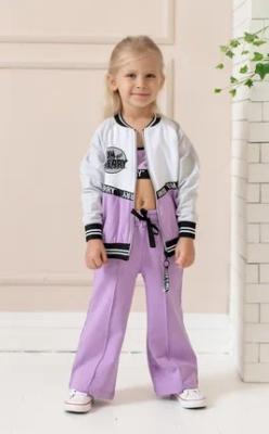 Бомбер для девочки на молнии сиренево-серый с полосками.Дополнительно