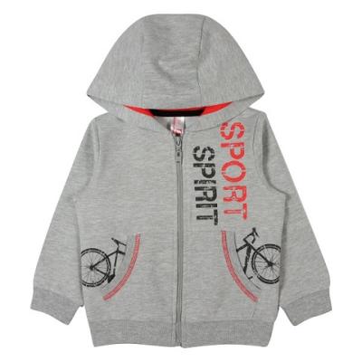 Куртка с капюшоном из гладкого футера. Капюшон двухшовный на подкладе из кулирки. Застёжка центральная на пластиковый тракторный замок-молния. Карманы настрочные - "кенгуру". Притачной пояс по низу куртки, манжеты рукава и планка входа в карман выполнены из кашкорсе с эластаном. Декорирована принтом.Дополнительно