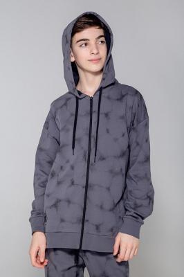 Куртка из футера с начесом, произведенного из натурального хлопка. Капюшон с подкладом из супрема регулируется с помощью шнурка. У изделия спущенные плечи, два кармана, эластичные манжеты и пояс. Оригинальная набивка выполнена из стойких текстильных красителей. Куртка сохраняет цвет и форму после многократных стирок.Дополнительно