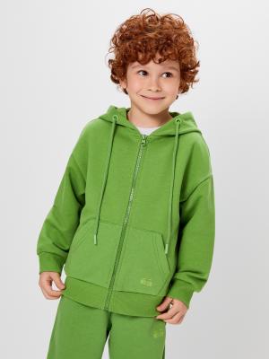 Худи на молнии для мальчика. Кофта с капюшоном и накладным карманом спереди. Спущенная лини плеча. Низ изделия и рукавов с эластичными трикотажными манжетами. Декоративный флажок с логотипом ACOOLA в боковом шве. Изготовлена из флиса (футера).Дополнительно