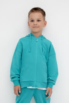 Трикотажная куртка для мальчика из петельчатого футера. Спереди удобные накладные карманы. Манжеты и пояс из эластичного трикотажа в рубчик.Дополнительно