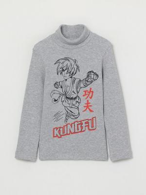 Водолазка для мальчика с воротником-стойкой с отворотом. Рукава длинные, втачные. Спереди водолазка декорирована принтом.Дополнительно