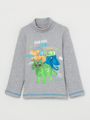 Водолазка для мальчика с длинными рукавами и воротником-стойкой с отворотом. Спереди водолазка декорирована принтом. По низу изделия и низу рукавов проложены декоративные строчки нитками контрастного цвета.Дополнительно