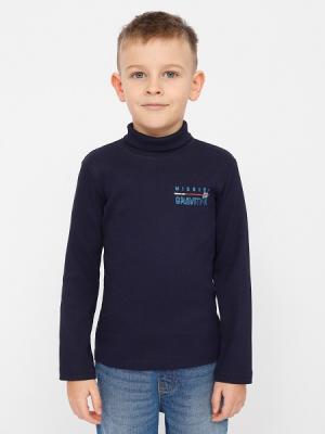Водолазка для мальчика с длинными рукавами и высоким воротником-стойкой с отворотом. Спереди декорирована небольшим принтом.Дополнительно