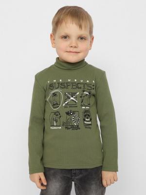 Водолазка для мальчика с длинными рукавами и высоким воротником стойкой с отворотом. Перед водолазки декорирован принтом.Дополнительно