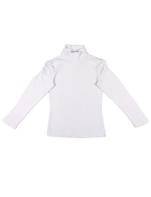 Водолазка для девочки, из трикотажа с эластаном, с длинным рукавом, горловина и верх рукава с декоративной сборкой.Дополнительно