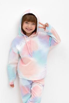 Толстовка с капюшоном для девочки из набивного петельчатого футера . Набивка выполнена из стойких текстильных красителей.Дополнительно