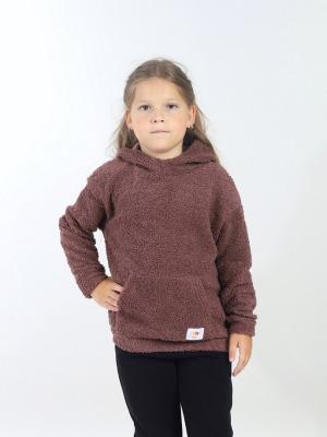 Толстовка для девочки из мягкого искусственного меха. Нежная, уютная и очень теплая толстовка из трикотажного полотна с эффектом меха ягнёнка. Крой оверсайз с заниженной линией плеча не сковывает движения, позволяя ребенку быть активным. Модель дополнена капюшоном и длинными рукавами. Спереди накладной карман кенгуру. Декорирована нашивной этикеткой.Дополнительно