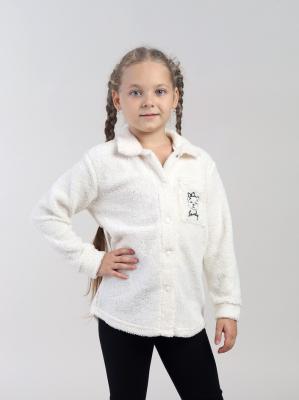 Рубашка для девочки из мягкого искусственного меха. Нежная, уютная и очень теплая рубашка из трикотажного полотна с эффектом меха ягнёнка. Крой оверсайз с заниженной линией плеча не сковывает движения, позволяя ребенку быть активным. Модель с застежкой на кнопки и длинными рукавами. Спереди накладной карман. Декорирована вышивкой (надпись: прекрасная).Дополнительно