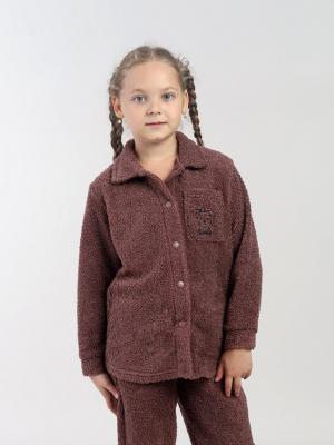 Рубашка для девочки из мягкого искусственного меха. Нежная, уютная и очень теплая рубашка из трикотажного полотна с эффектом меха ягнёнка. Крой оверсайз с заниженной линией плеча не сковывает движения, позволяя ребенку быть активным. Модель с застежкой на кнопки и длинными рукавами. Спереди накладной карман. Декорирована вышивкой (надпись: прекрасная).Дополнительно