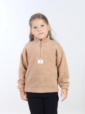 Толстовка олимпийка для девочки из мягкого искусственного меха. Нежная, уютная и очень теплая толстовка из трикотажного полотна с эффектом меха ягнёнка. Крой оверсайз с заниженной линией плеча не сковывает движения, позволяя ребенку быть активным. Модель дополнена воротником стойкой и длинными рукавами. Спереди застежка на молнию. Декорирована нашивной этикеткой.Дополнительно