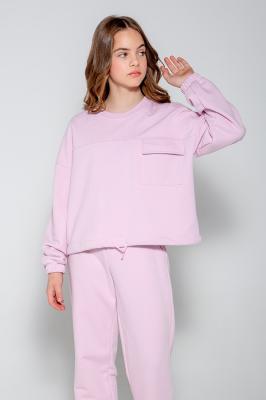Джемпер из петельчатого футера трехнитки, произведённого из натурального хлопка. Пояс регулируется по ширине с помощью шнурка. У изделия на груди спереди карман, спущенные плечи, рукава собранны по низу на резинку. Джемпер сохраняет цвет и форму после многократных стирок.Дополнительно