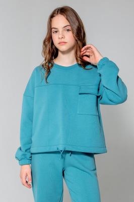 Джемпер из петельчатого футера трехнитки, произведённого из натурального хлопка. Пояс регулируется по ширине с помощью шнурка. У изделия на груди спереди карман, спущенные плечи, рукава собранны по низу на резинку. Джемпер сохраняет цвет и форму после многократных стирок.Дополнительно