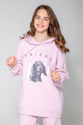 Худи из петельчатого футера трехнитки, произведённого из натурального хлопка. Капюшон с подкладом из супрема регулируется с помощью шнурка. У изделия спущенные плечи, карманы по бокам, эластичные манжеты и пояс. Оригинальный принт выполнен из стойких текстильных красителей.Сохраняет цвет и форму после многократных стирок.Дополнительно
