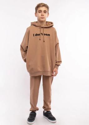 Худи (пуловер) для мальчика бежевый с капюшоном. Худи для детей и подростков выполнено из плотной трикотажной ткани - футера. Капюшон со шнурком, вышивка в виде черной лаконичной надписи на груди. Манжеты рукавов и низ на резинке.Дополнительно