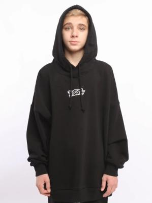 Свитшот (пуловер) для мальчика чёрный с капюшоном. Стильный свитшот для мальчика подростка в монохромном цвете, с минималистичной надписью на груди станет любимым предметом одежды в гардеробе вашего модника. Шнурок в капюшоне, эластичные манжеты рукавов и низ.Дополнительно