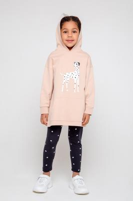 Удлинённая толстовка с капюшоном. Сшита из плотного футера петли трёхнитки. Рукава со спущенными плечами оканчиваются эластичными манжетами и придают свободный объём. На животе большой удобный карман-кенгуру. Низ обработан плоскими швами. Украшена изображением далматинца.Дополнительно