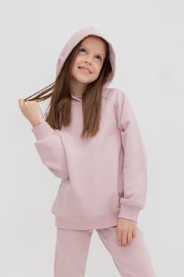 Толстовка с капюшоном для девочки из футера с начесом. В составе 80% натурального хлопка и 20% полиэстера, при этом полиэстер ввязан внутрь по особой технологии и не соприкасается с кожей. Оригинальная набивка выполнена из стойких текстильных красителей. Манжеты и пояс из эластичного трикотажа.Дополнительно