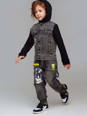 Джинсовка детская для мальчика. Куртка из сверхудобного эластичного материала Loop Denim. Loop denim имеет внешний вид классической джинсы, а по тактильным ощущениям мягкий и комфортный, как трикотаж. Капюшон и рукава из футера. Эластичный пояс с резинками внутри, растягиваясь и сокращаясь, мгновенно подстраивается под реальные размеры талии. Средняя длина. Функциональные нагрудные и боковые карманы. По низу рукавов - манжеты из риба. Застежка на кнопки.Дополнительно