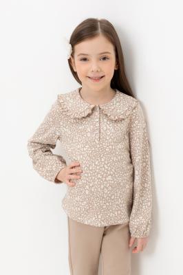 Джемпер для девочки с воротником и объемными рукавами из высококачественного трикотажа. Оригинальная набивка выполнена из стойких текстильных красителей.Дополнительно