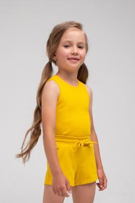 Лёгкая летняя майка горчичного цвета. Сшита из эластичного материала кашкорсе с добавлением эластана. Эластан в составе помогает изделию дольше сохранять первоначальный вид и форму.Дополнительно