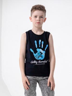 Майка для мальчика с принтом спереди. Срезы горловины и пройм обработаны притачными планками из полотна с эластаном.Дополнительно