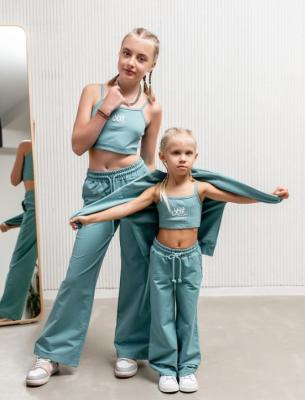 Топ (майка) для девочки мятный на тонких бретелях и с вышивкой на груди. Изящная модель выполнена из качественного трикотажа - ткани кашкорсе.Дополнительно