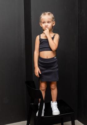 Топ (майка) для девочки в графитовой расцветке на тонких бретелях однотонный. Изящная модель выполнена из качественного трикотажа - ткани кашкорсе. Ткань легкая и плотная, приятно ощущается на теле.Дополнительно