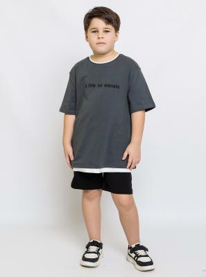 Футболка детская трикотжная из супрема с короткими рукавами. Модная футболка в темно-серой расцветке понравится как детям, так и подросткам. Качественная модель от бренда batik с вышитой на груди надписью и имитацией второго слоя.Дополнительно
