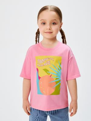 Детская трикотажная футболка для девочки представляет собой модель с комфортной посадкой, обеспечивающую ощущение свободы и легкости. Свободный крой, приспущенная линия плеча и увеличенные объем и длина рукава делают эту футболку идеальным вариантом для повседневного использования. На передней части футболки размещен стильный принт с текстовой надписью "TROPICAL MIRAGE" англ. - "Тропический мираж". Этот принт придает футболке особый шарм и создает атмосферу тропического отдыха и веселья. Футболка легко сочетается как с джинсами, так и с юбкой, позволяя создавать разнообразные и стильные повседневные образы. Она подходит для активного времяпрепровождения на свежем воздухе, прогулок, игр или домашнего отдыха в летний сезон.Скидка 15% за подписку