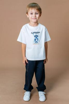 Футболка для мальчиков из коллекции бренда DELORAS идеально подходит для летнего сезона и детей дошкольного возраста. Она выполнена из мягкого трикотажа, что делает её комфортной и подходящей для активных игр в детском саду.Футболка имеет свободный прямой крой и оверсайз дизайн, который обеспечивает максимальное удобство и свободу движений. Спущенная линия плеча придаёт модели современность, а контрастный принт спереди добавляет стильности и оригинальности.