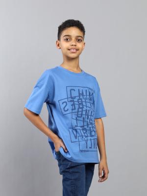 Футболка для мальчика оверсайз из кулирной глади. Рукав втачной, горловина обработана притачной бейкой из рибаны с лайкрой. Перед декорирован принтом.Дополнительно