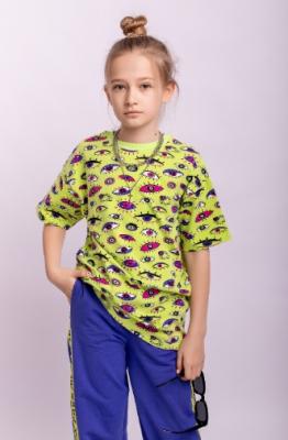 Туника для девочки с коротким рукавом и принтом с глазами.Дополнительно