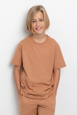 Трикотажная футболка прямого силуэта из 100% натурального хлопка. У изделия удлиненная спинка, небольшие разрезы в боковых швах. Оригинальная набивка выполнена из стойких текстильных красителей. Футболка сохраняет цвет и форму после многократных стирок.Все трикотажные полотна производятся в соответствии с нормами Швейцарского сертификата ЭкоТекс.