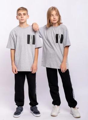 Футболка с коротким рукавом из футера серая. Акцентный элемент на груди с надписью.Дополнительно