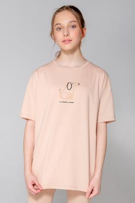 Трикотажная футболка из натурального хлопка. У изделия спущенные плечи, спинка удлинена. Оригинальный принт выполнен из стойких, гипоаллергенных текстильных красителей.Все трикотажные полотна производятся в соответсвии с нормами Швейцарского сертификата ЭкоТекс.Дополнительно