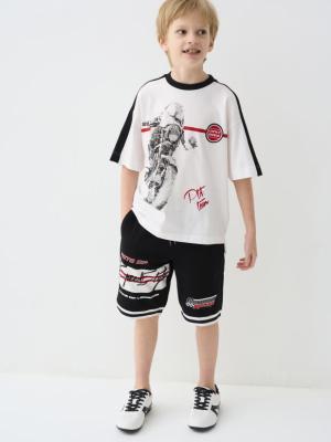 Футболка оверсайз белая с коротким рукавом для мальчика подростка. Выполнена из плотного трикотажа с высоким содержанием хлопка. Дизайн подчёркивает спортивный стиль и энергичную тематику.Особенности ухода