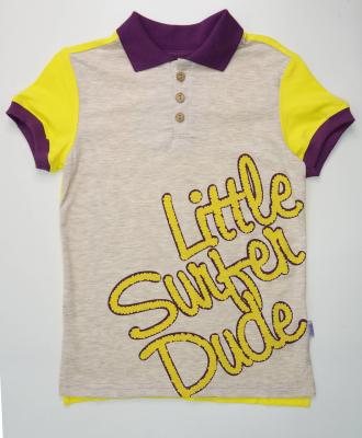 Футболка-поло с короткими рукавами. Горловина обработана отложным воротником. В верхней части переда обработана застежка на пуговицы. Перед декорирован принтом. Спинка и рукава в цвете надписи принта. Воротник и окантовочная бейка на рукавах одного цвета. Футболка сохраняет яркость и стойкость после многочисленных стирок, материал мягкий и приятный к телу, не вызывает раздражение. Ткань трикотаж - приятная на ощупь, не растягивается. Это идеальный вариант на каждый день и для прогулок. Футболка детская может использоваться круглогодично: для сада, для активного отдыха, для спорта, для дома, на пляж.Дополнительно
