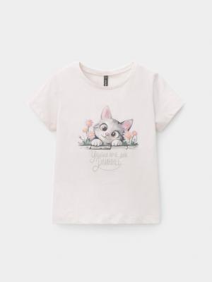 Футболка для девочки из высококачественного трикотажного полотна. Оригинальный рисунок выполнен из стойких текстильных гипоаллергенных красителей. Изделие сохраняет цвет и форму после многократных стирок. Все трикотажные полотна производятся в соответствии с нормами швейцарского сертификата ЭкоТекс.Дополнительно