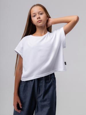 Футболка для детей школьного возраста. Футболка свободного силуэта, укороченная. Горловина футболки округлой формы. Состав:кулирная гладь 92% хлопок 8% лайкраДополнительно