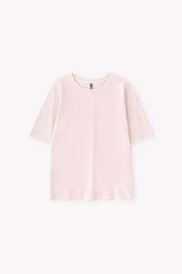 Укороченная футболка из приятного материала кашкорсе с эластаном. Эластан в составе делает изделие эластичным и помогает ему дольше сохранять первоначальный вид. Втачные рукава и низ изделия обработаны плоскими швами.Дополнительно